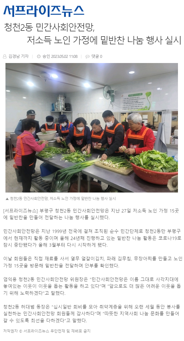 청천2동 민간사회안전망 저소득 노인가정 밑반찬 나눔 행사 5월 봉사활동 페이지 정보 작성자 최고관리자 작성일23-05-04 13:36 조회31,646회 댓글0건 관련링크 본문 청천2동 민간사회안전망 저소득 노인가정 밑반찬 나눔 행사 5월 봉사활동 댓글목록 등록된 댓글이 없습니다. 이전글 다음글 목록