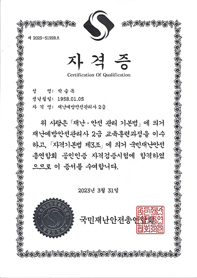 국민재난안전총연합회 재난안전보안관 임명 및 재난예방안전관리사 2급 자격획득 페이지 정보 작성자 최고관리자 작성일23-06-08 09:31 조회34,003회 댓글0건 관련링크 본문 국민재난안전총연합회 재난안전보안관 임명 및 재난예방안전관리사 2급 자격획득 댓글목록 등록된 댓글이 없습니다. 이전글 다음글 목록