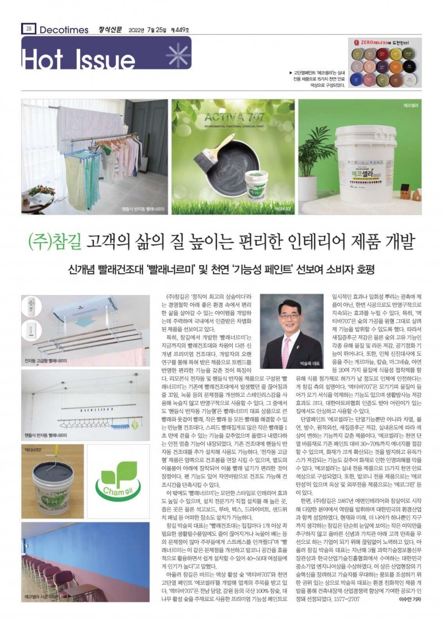참길, 고객의 삶의 질 높이는 편리한 인테리어제품 개발 (장식신문 제449호) 페이지 정보 작성자 최고관리자 작성일22-07-20 15:39 조회32,398회 댓글0건 관련링크 본문 참길, 고객의 삶의 질 높이는 편리한 인테리어제품 개발 (장식신문 제449호) 댓글목록 등록된 댓글이 없습니다. 이전글 다음글 목록