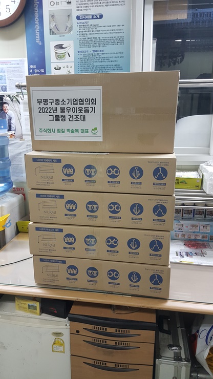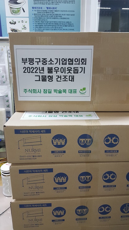 2022년 불우이웃돕기 그물형건조대 및 현금 기부 관련 부평구중소기업협의회를 통해 (주)참길 빨래너르미도 동참하였습니다.