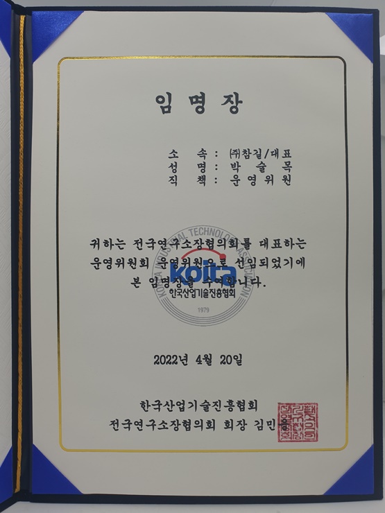 전국연구소장협의회 운영위원회 운영위원 임명 페이지 정보 작성자 최고관리자 작성일22-04-27 13:55 조회33,517회 댓글0건 관련링크 본문 (주)참길 대표님께서 전국연구소장협의회 운영위원회 운영위원으로 임명되셨습니다. 댓글목록 등록된 댓글이 없습니다. 이전글 다음글 목록