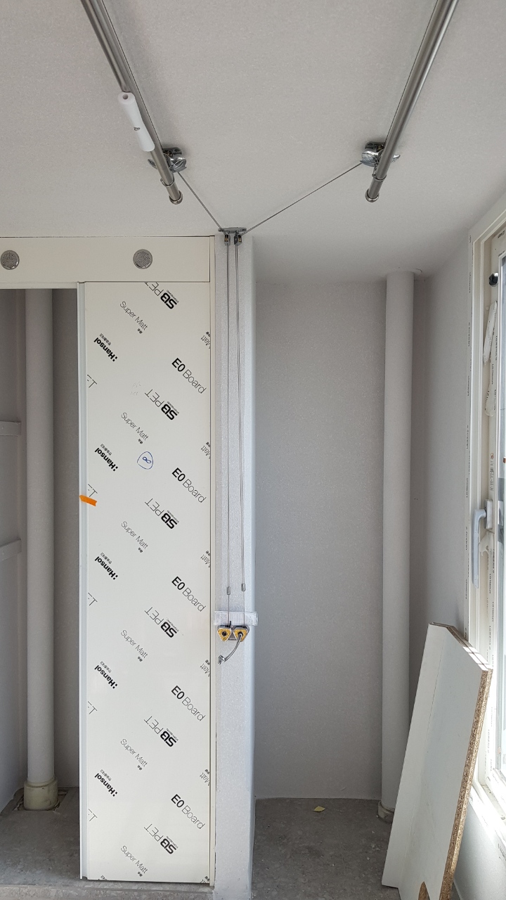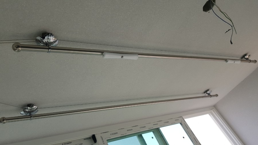 설치해주신 기사님 말씀에 의하면 50KG까지 버티는 와이어라고 하니, 그정도까진 아니더라도 실제 빨래건조시에는 불안하지 않을 것 같습니다.
