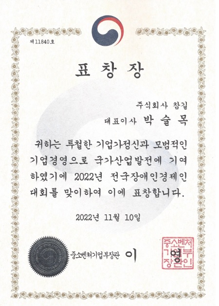 중소벤처기업부장관 제17회 전국장애인경제인대회 장관상 수상 페이지 정보 작성자 최고관리자 작성일22-11-11 14:22 조회28,638회 댓글0건 관련링크 본문 중소벤처기업부장관 제17회 전국장애인경제인대회 장관상 수상 댓글목록 등록된 댓글이 없습니다. 이전글 다음글 목록